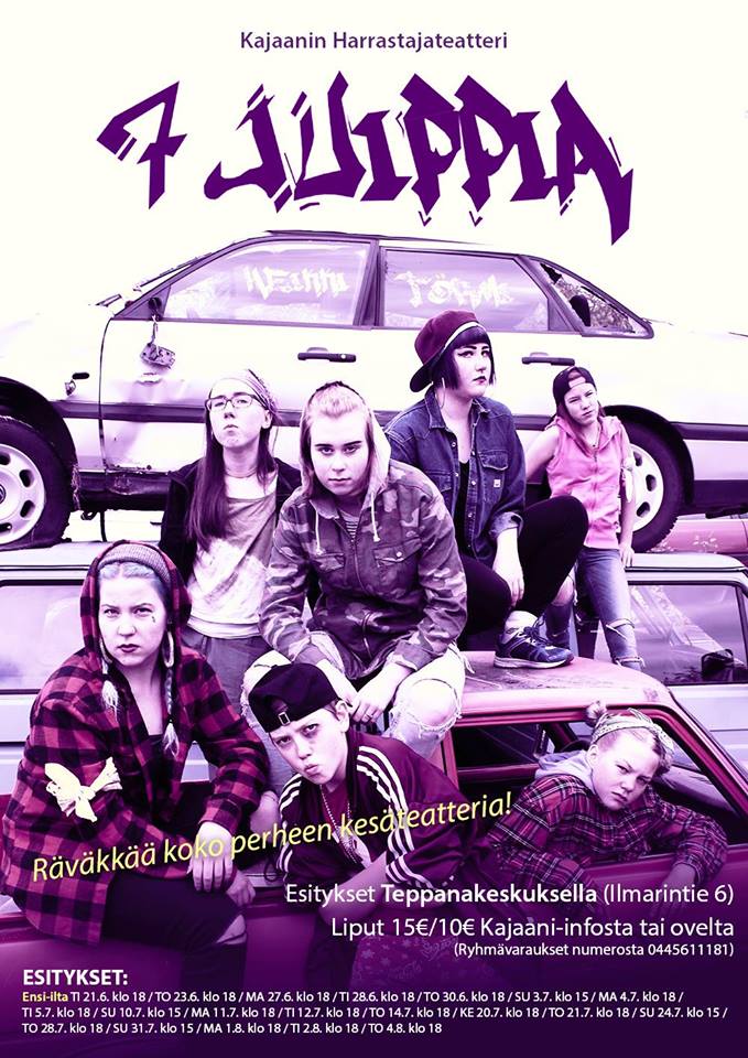 Aleksis Kiven Seitsemän veljestä – teokseen perustuva 7 juippia on seitsemän kajaanilaisen nuoren kasvutarina kohti aikuisuutta ja yhteiskunnan jäsenyyttä. Kertomus sijoittuu tämän päivän kajaanilaiseen urbaaniin maisemaan ja sisältää vauhdikkaita ja vaarallisia tilanteita, romantiikkaa ja rakkaudennälkää unohtamatta. Kuinka reissussa käy?